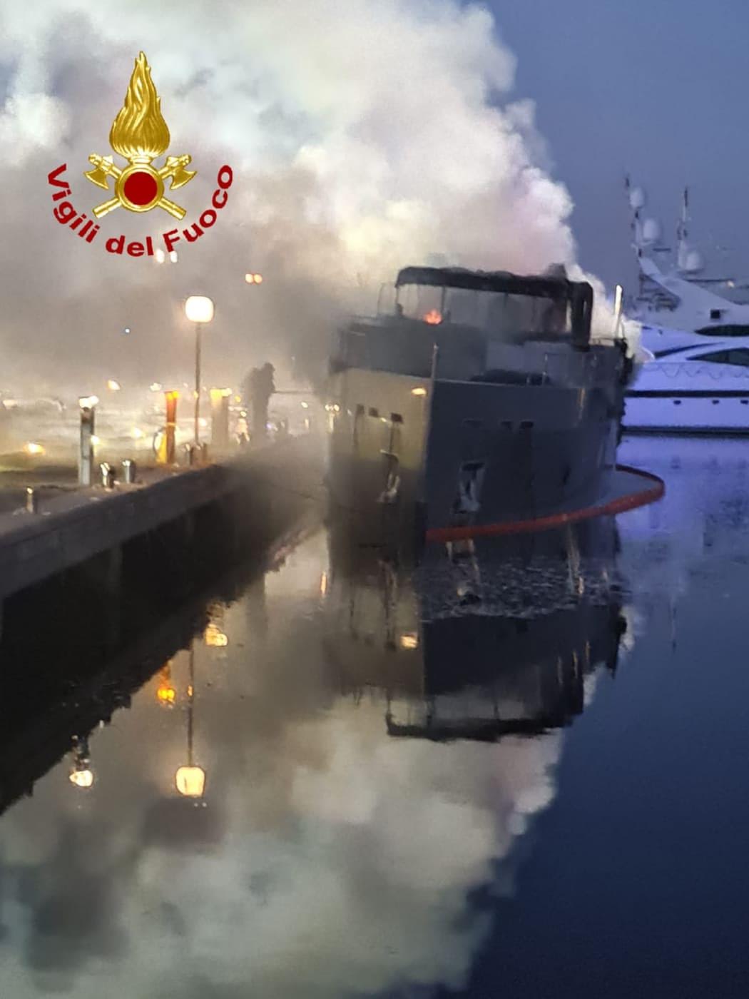 Olbia: a fuoco un’imbarcazione ancorata nel porto turistico, intervengono i vigili del fuoco