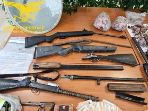 Nell’ambito dell’attività sono state recuperate due armi clandestine costituite da due fucili con matricola abrasa, oltre a cartucce di vario calibro, alcune dosi di sostanza stupefacente (cannabis), selvaggina e sistemi di cattura utilizzati per il bracconaggio (reti per uccellagione). Considerato il reato di porto e detenzione di armi clandestine, si disponeva l’arresto in carcere dei due indagati, di 54 e 22 anni, entrambi di Pula, che sono stati tradotti presso la Casa Circondariale di Uta.