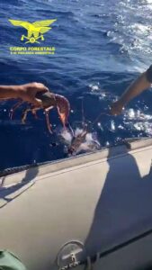 Ai pescatori è stata contestata la pesca delle aragoste in periodo di divieto e la detenzione di esemplari di Tritone Mediterraneo.
