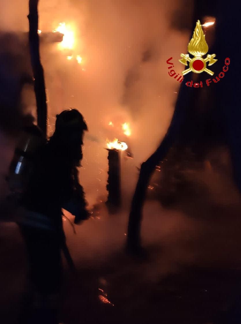 In corso gli accertamenti per stabilire le cause del rogo. Sul posto sono intervenuti anche i carabinieri di Torpè.