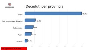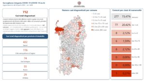 Sul territorio, dei 874 casi positivi complessivamente accertati, 144 sono stati registrati nella Città Metropolitana di Cagliari (+10 rispetto all’ultimo aggiornamento), 63 nel Sud Sardegna, 20 a Oristano (+1), 62 a Nuoro, 585 (+38) a Sassari.