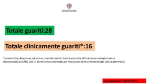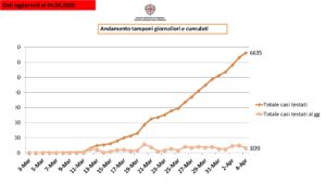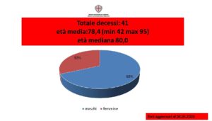 Le persone attualmente positive sono 789, 45 i nuovi attualmente positivi, 44 i dimessi (in attesa di conferma dall’Istituto Superiore di Sanità). I deceduti sono saliti a 41. I tamponi effettuati sono 6.789.