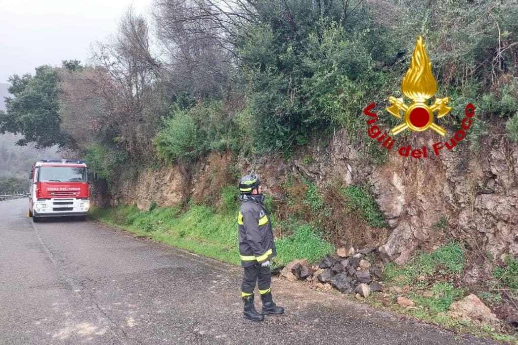 Oltre al terreno impervio reso instabile dalla pioggia, la presenza di un muro a secco ha influito sulla caduta di diversi massi sulla carreggiata. I vigili del fuoco hanno messo in sicurezza l’area interessata.