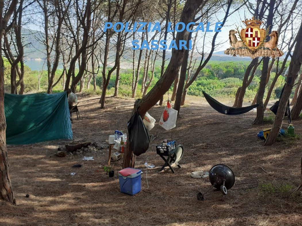 Barbecue, fornellini, rifiuti abbandonati e scarso rispetto dell’ambiente. Hanno trovato di tutto gli agenti della Polizia locale di Sassari che ieri hanno sanzionato una decina di campeggiatori abusivi nella pineta di Porto Ferro.
