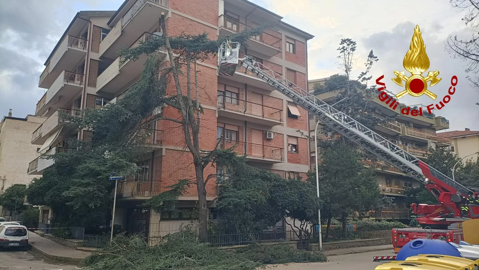 I vigili del fuoco sono intervenuti in via Oriani, a Sassari, per mettere in sicurezza un grande albero all’interno di un condominio che si è piegato dal vento verso la pubblica via minacciando l’incolumità dei passanti e autovetture.