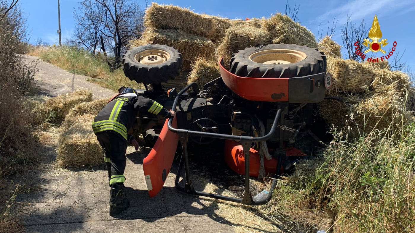 I vigili del fuoco del distaccamento di Cuglieri sono intervenuti nelle campagne di Sennariolo. Un trattore con un carrello carico di presse di foraggio, nell’affrontare una forte pendenza, per cause in corso di accertamento, si è ribaltato sbalzando fuori il conducente, che fortunatamente non ha riportato traumi evidenti.