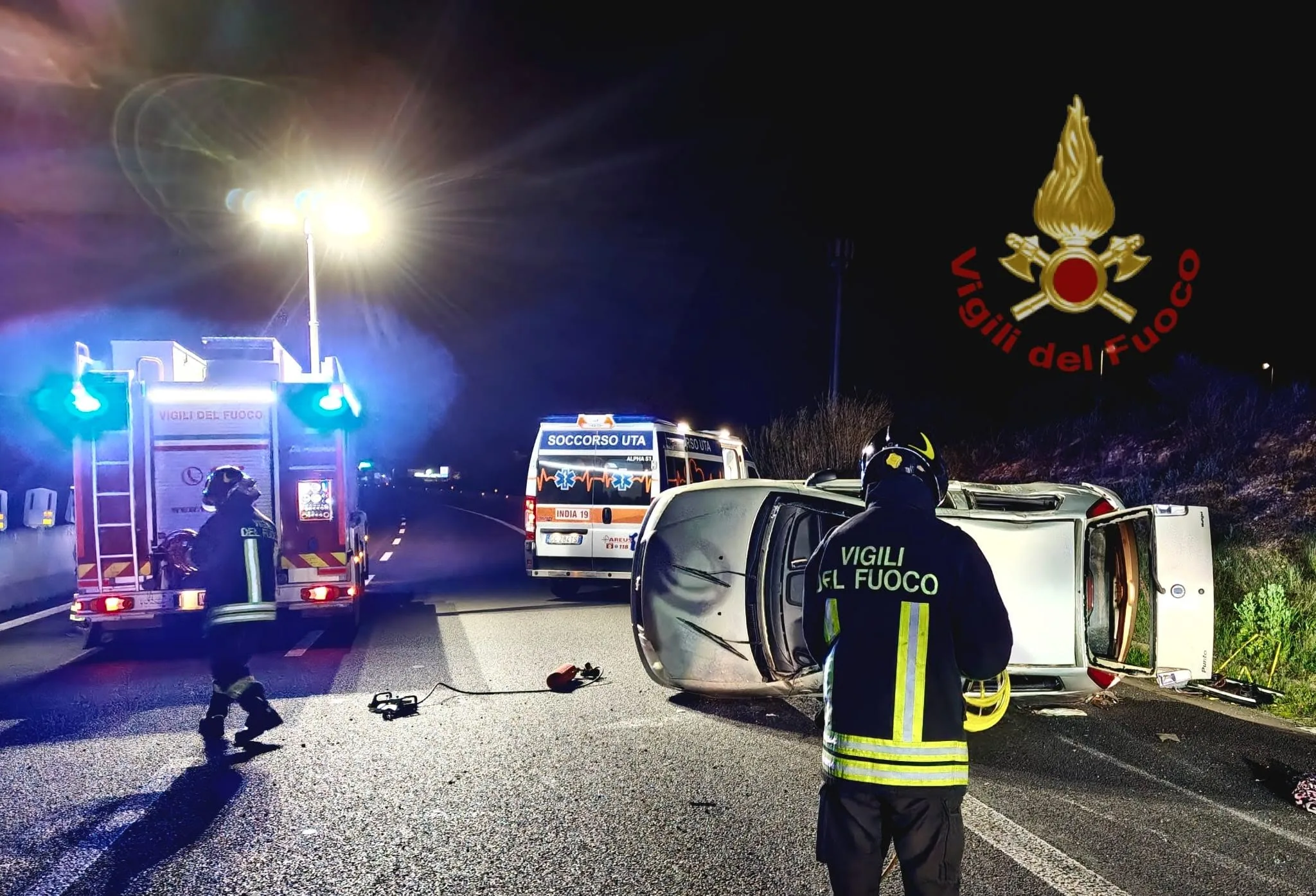 Per cause ancora da accertare, un’autovettura si è ribaltata sulla carreggiata.