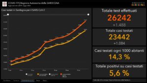 Sono 18 i nuovi casi positivi al Covid-19 riscontrati in Sardegna su 1.488 tamponi eseguiti. 1 decesso