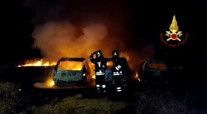 Le segnalazioni sono pervenute al numero di emergenza 115 che ha inviato sul posto una squadra di pronto intervento della sede centrale con un APS automezzo fuoristrada dotato di modulo antincendio boschivo e in supporto anche un’autobotte dove gli operatori hanno spento le fiamme che hanno coinvolto i tre veicoli, sterpaglie e vegetazione varia. Nessuna persona risulta coinvolta.