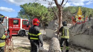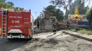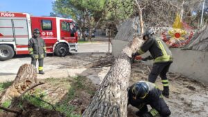 I vigili del fuoco hanno provveduto al taglio del grosso tronco che ostruiva il marciapiede e l’ingresso dell’abitazione e alla messa in sicurezza dell’area.