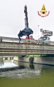 I vigili del fuoco hanno operato con l’ausilio dell’autogrù per effettuare il recupero dell’auto.