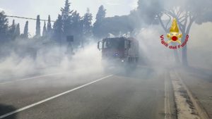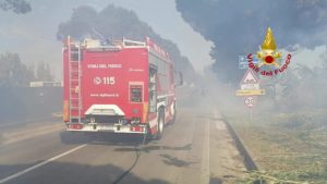 Sul posto, stanno operando varie squadre di pronto intervento della sede centrale del Comando con più di dieci automezzi, tra autopompe, autobotti e automezzi fuoristrada dotati di modulo antincendio boschivo.
