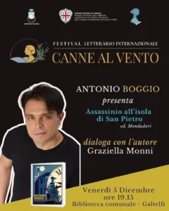 Ogni isola è un mondo chiuso. Ogni comunità ha i suoi segreti. E ogni morte apparente nasconde una verità che qualcuno ha cercato di seppellire. Venerdì 5 dicembre, alle ore 19.15, la Biblioteca comunale di Galtellì ospita Antonio Boggio per la presentazione di “Assassinio all’isola di San Pietro” (Mondadori), nell’ambito del Premio Letterario Internazionale “Canne al vento”, il primo riconoscimento letterario internazionale della Sardegna. A dialogare con l’autore sarà Graziella Monni.