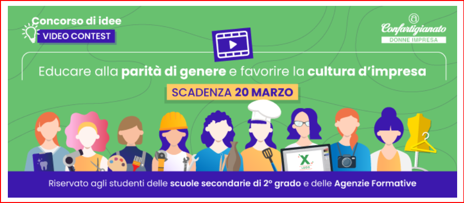 Le studentesse e gli studenti potranno partecipare singolarmente o in gruppo presentando un videocontest ispirato ai valori delle imprese guidate dalle donne e alle peculiarità dell’artigianato e delle micro e piccole aziende. Gli elaborati dovranno rispettare criteri di originalità, comunicatività e coerenza con il tema proposto.