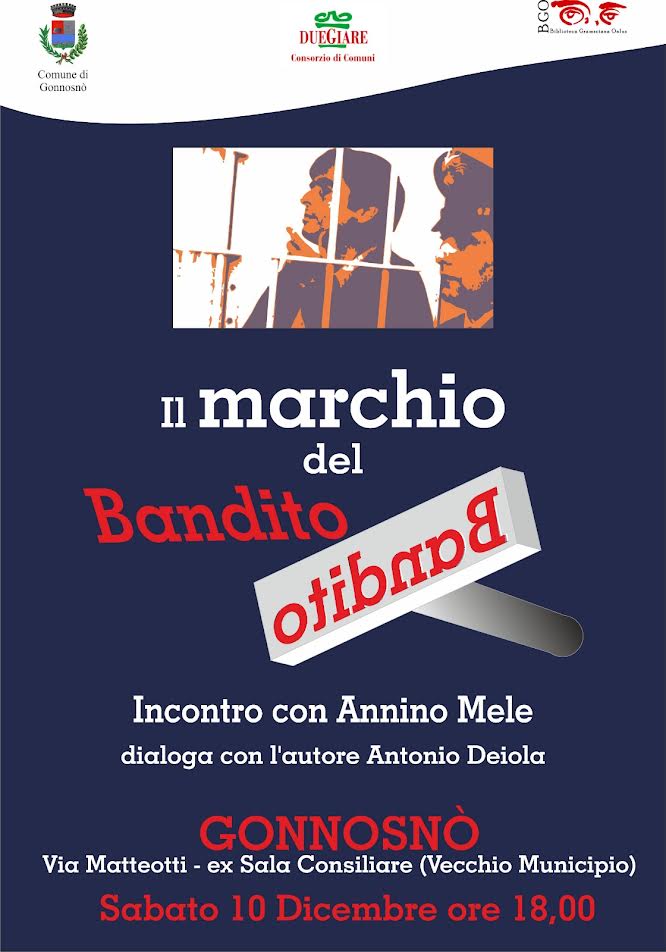 Sabato 10 dicembre, l’aula consiliare dell’ex Municipio di Gonnosnò, in via Matteotti, alle 18.00, ospiterà un incontro con Annino Mele dal titolo “Il Marchio del bandito”. Mele dialogherà con Antonio Deiola e parlerà delle sue esperienze ben descritte in due suoi volumi: “Il marchio del Bandito” e “Probomines”. L’iniziativa è organizzata dal Comune e dalla Biblioteca Gramsciana, con il sostegno del Consorzio Due Giare.