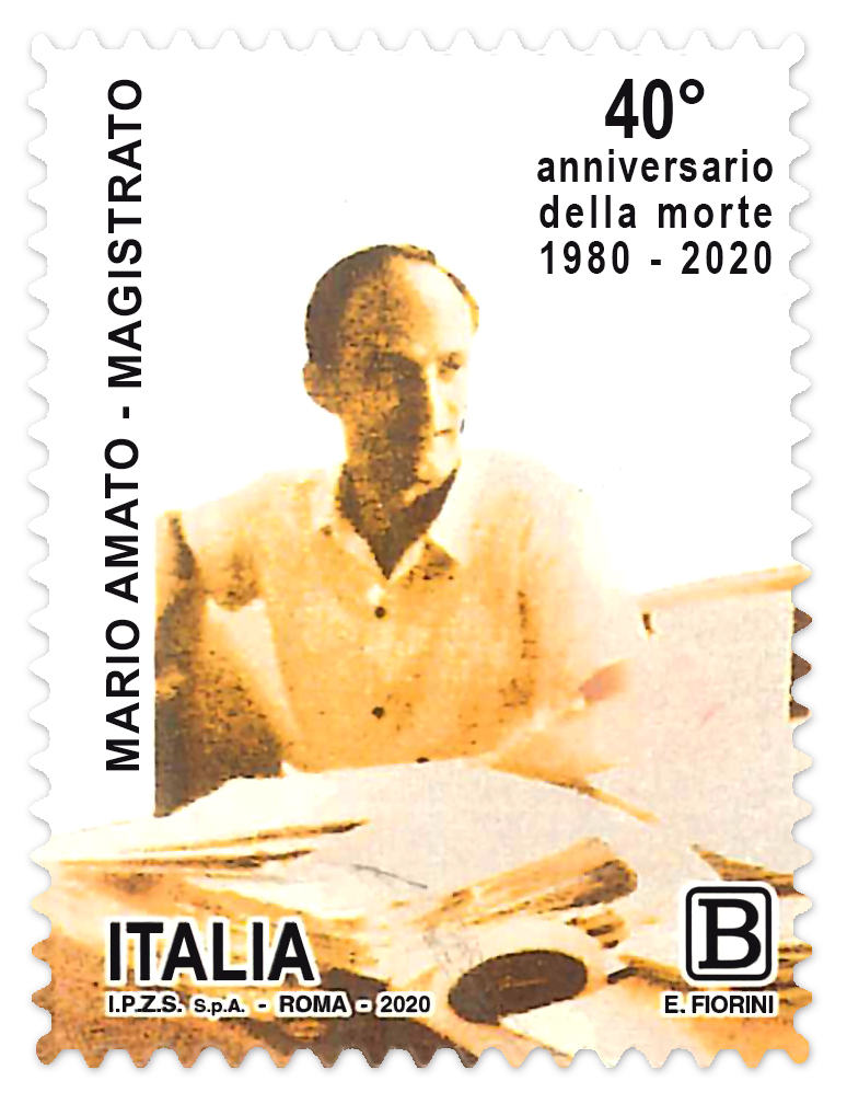 Completano il francobollo le leggende “MARIO AMATO – MAGISTRATO”, “40° ANNIVERSARIO