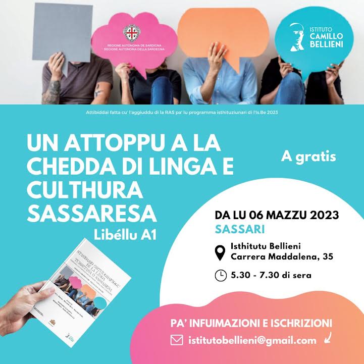 L’Istituto Camillo Bellieni di Sassari attiva il suo primo corso di “Linga e culthura sassaresa”: a partire dal 6 marzo, un ciclo di appuntamenti a titolo gratuito si svolgerà in presenza nella sede Is.Be di via Maddalena 35, tutti i lunedì, dalle 17.30 alle 19.30, per la durata complessiva di venti ore. Guida d’eccezione di questo percorso formativo sarà Mario Lucio Marras, insegnante, poeta e scrittore, nonché componente del gruppo di lavoro Is.Be che lo scorso anno ha stilato lo standard ortografico del Sassarese riconosciuto dalla Regione Autonoma della Sardegna.Per la prima volta saranno utilizzati i testi realizzati durante la codificazione dello standard, arricchiti da esercizi appositamente preparati.