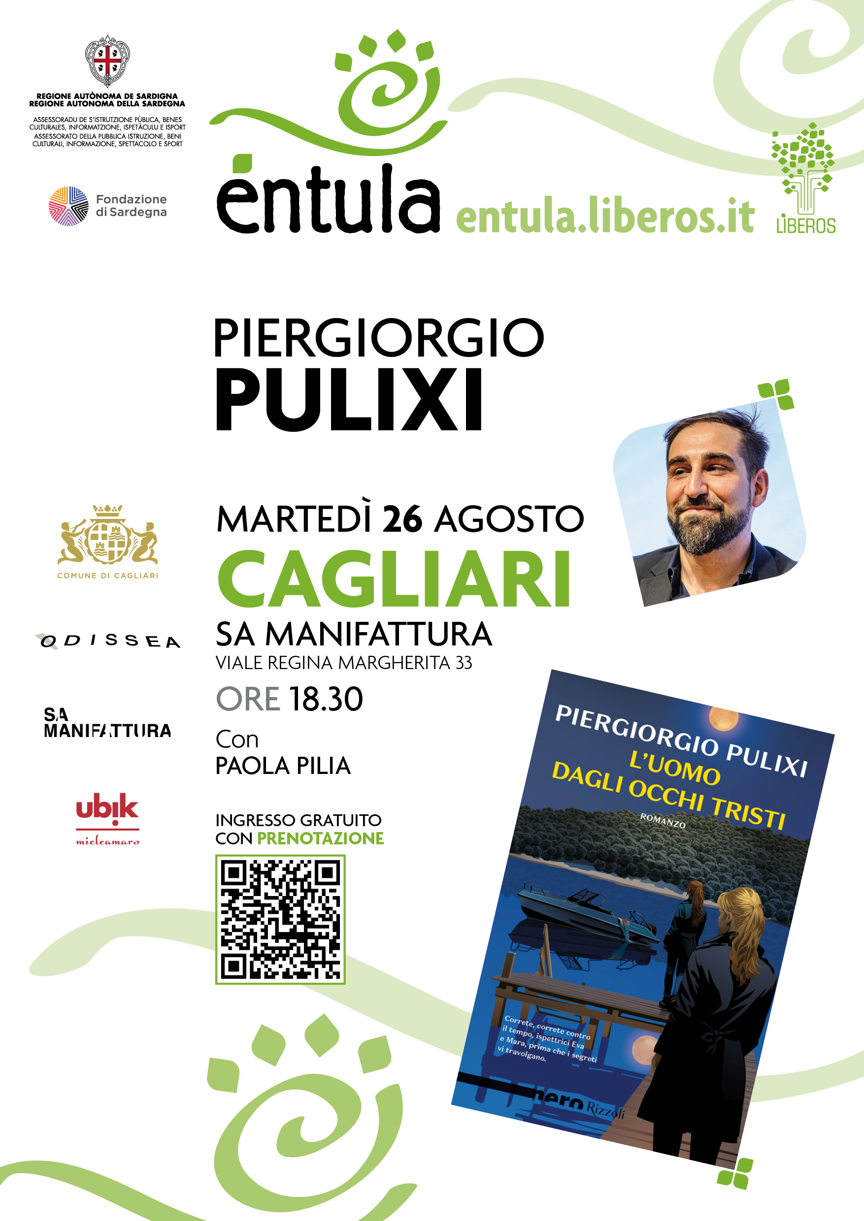 L’incontro è realizzato da Lìberos nell’ambito del festival Éntula con il sostegno del comune di Cagliari e in collaborazione con il cinema Odissea, Sa Manifattura, la libreria Mieleamaro di Cagliari e Zarcle.