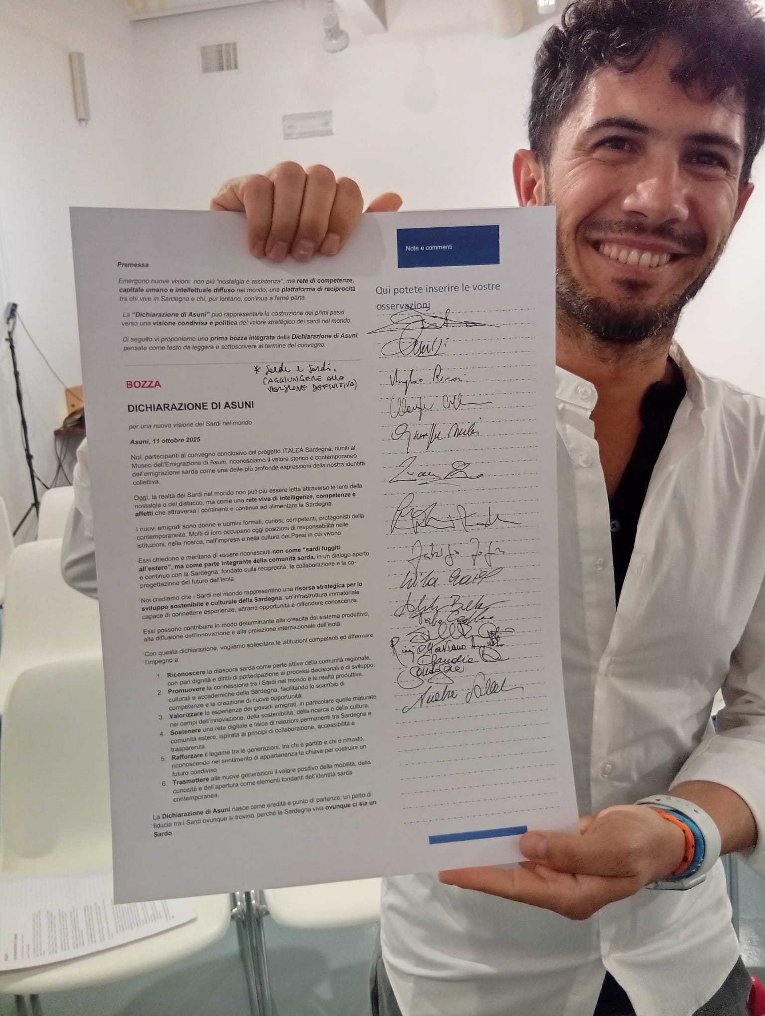 La dichiarazione di Asuni si conclude con sei punti programmatici che invitano a riconoscere la diaspora sarda come parte attiva della comunità regionale, a promuovere connessioni tra emigrati e realtà produttive, a valorizzare le competenze dei giovani, e a costruire una rete digitale e fisica permanente tra Sardegna e mondo.