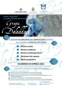 Sono partite le iscrizioni al primo concorso di composizione musicale “Grazia Deledda”, indetto dalla Scuola civica di musica di Nuoro in occasione del centocinquantesimo anniversario dalla nascita della scrittrice nuorese premio Nobel per la letteratura nel 1926. Cinque le sezioni: musica corale, musica moderna, musica contemporanea, musica popolare ed orchestra da camera.