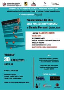 Con la presentazione del volume “Quel maledetto Vronskij” di Claudio Piersanti, venerdì 30 aprile alle 17,30, in diretta streaming tramite collegamento remoto proseguono le anteprime del Festival Premio Emilio Lussu – VII edizione di Cagliari, gemellato con il Festival Trame d’Estate IX edizione di Seravezza.