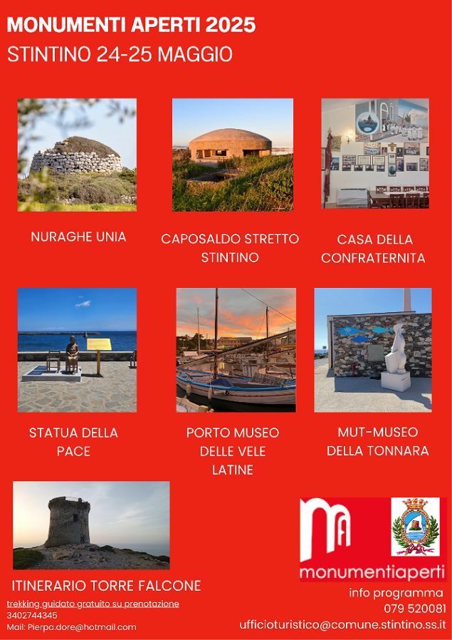 Anche Stintino sarà protagonista, il 24 e 25 maggio dell’edizione 2025 di Monumenti aperti. Un programma visite gratuite che va dal Museo della Tonnara, passando per la Casa della Confraternita Madonna della Difesa e il Porto Museo delle Vele Latine, il suggestivo Nuraghe di Unia e il Caposaldo militare Stretto Stintino. Novità di quest’anno sarà l’adozione della Statua della Pace (simbolo contro la violenza sulle donne) da parte del Liceo Magistrale Margherita di Castelvì di Sassari.