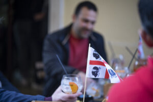 In vari tavoli, individuabili grazie alle bandiere della Sardegna, si può consumare qualcosa da bere e da mangiare e nel mentre parlare in sardo con amici e nuove persone con il quale fare amicizia. Le chiacchierate sono libere dai giudizi e ognuno può scegliere come esprimersi. Qualsiasi variante è bene accolta, anzi, festeggiata e se non si parla il sardo si può ascoltare e rispondere in italiano per iniziare. I soci di Assemblea Natzionale Sarda organizzano anche giochi di società, come Sardoo e Bomba, per far sì che i sardofoni principianti e i meno avvezzi al sardo possano sbloccarsi e imparare in libertà e senza pressioni.