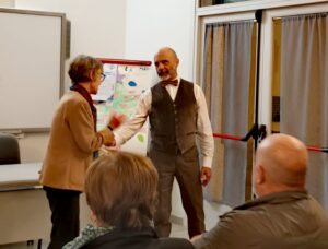 Eravamo invece nel 2025, ad ascoltare Andrea Maxia, nuorese poliedrico che si occupa di sport, musica, teatro – è stato componente di un coro lirico a Sassari e fa parte del cast dell’opera teatrale IL GIORNO DEL GIUDIZIO di Salvatore Satta, che con oltre 8.000 presenze è stata l’opera più vista in Sardegna.