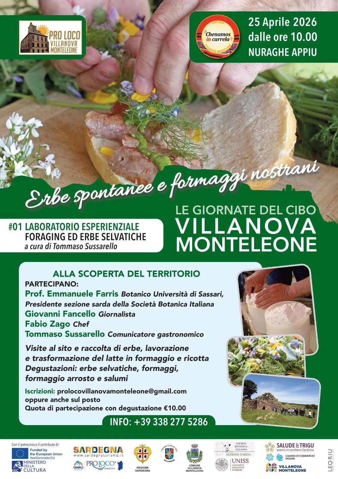 Il Nuraghe Appiu di Villanova Monteleone torna al centro delle “Giornate del cibo”, evento organizzato dalla Pro Loco e in programma sabato 25 aprile. Dalle 10.00 si comincia con l’evento dedicato alle “Erbe spontanee commestibili e possibili abbinamenti con i formaggi nostrani e le ricotte”.