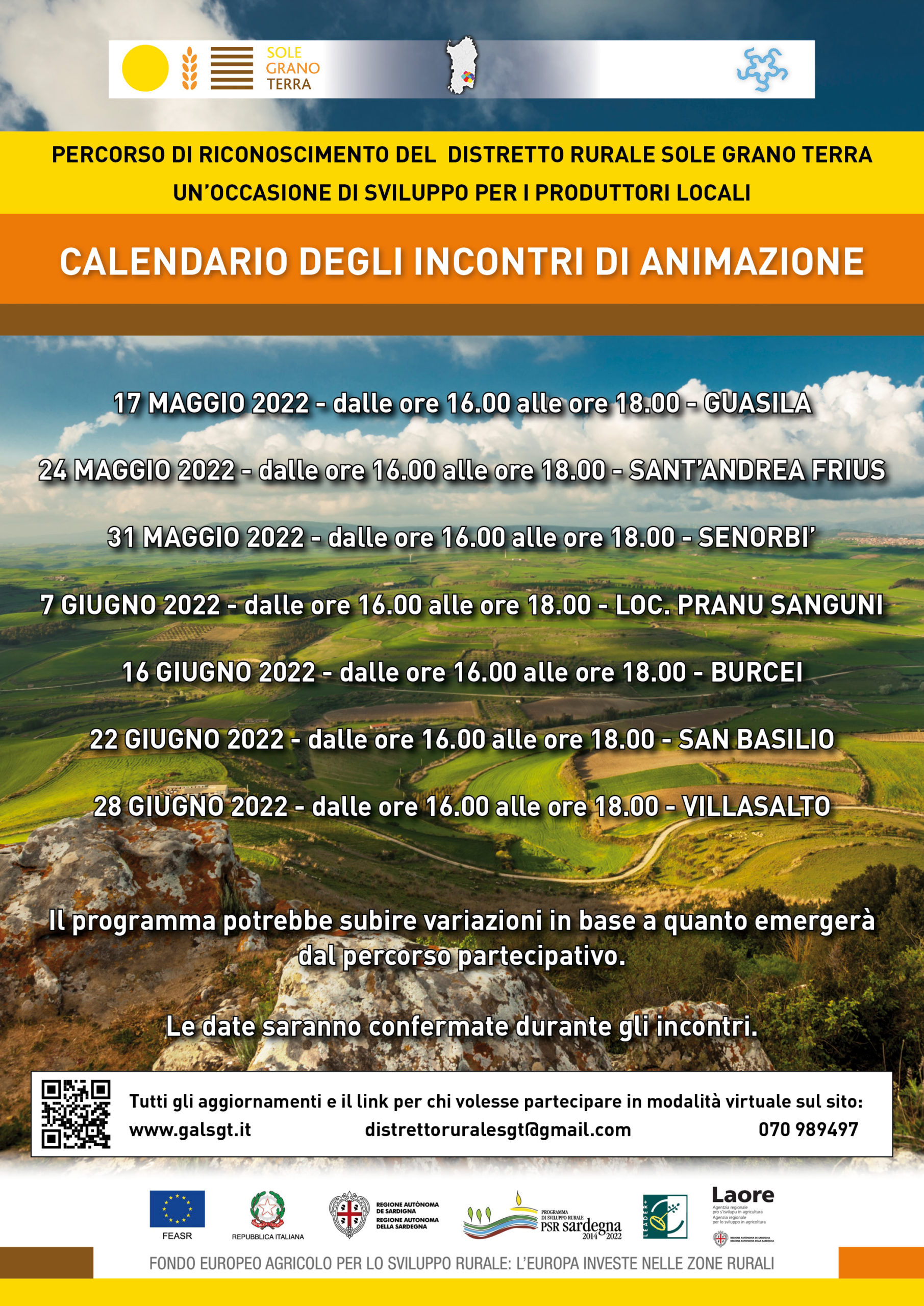 Nel primo incontro, che si terrà a Guasila, in cui si darà avvio al processo partecipativo, saranno condivisi, con una discussione aperta ai contributi di tutti gli interessati gli obiettivi di valorizzazione e saranno presentati il percorso di partecipazione, gli strumenti di comunicazione e l’iter di costituzione del Distretto.
