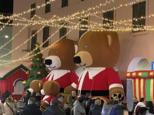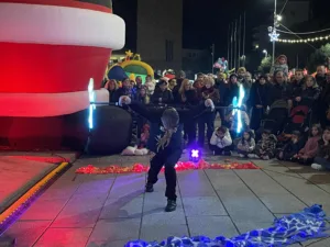 Spettacolo di artisti sui trampoli e giocolieri con luci fluttuanti hanno intrattenuto le centinaia di persone che hanno scelto di uscire a passeggio la domenica sera. Il grande villaggio gonfiabile di Babbo Natale ha colpito nel segno… personaggi grandi morbidi e colorati, hanno incantato i tantissimi visitatori. Gli occhi sognanti dei bambini ieri sono stati la riprova che l’innocenza della tenera età è la fiamma che tiene accesa la magia del Natale.