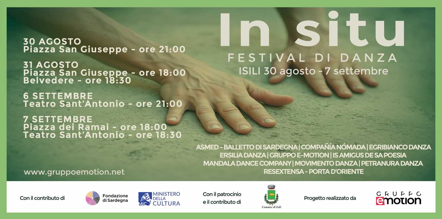 E’ tutto pronto, a Isili, per la seconda edizione del festival “In Situ”, realizzato grazie al contributo della Fondazione di Sardegna, del Ministero della Cultura e con il patrocinio e il sostegno del comune di Isili e che vede la direzione artistica della coreografa Francesca La Cava. In Piazza San Giuseppe, al Teatro Sant’Antonio, in Piazza dei Ramai e in Piazza Belvedere spazio a performance di danza contemporanea, musica, poesia, fotografia e artigianato. Luoghi vissuti, rivelati e trasformati dall’arte.