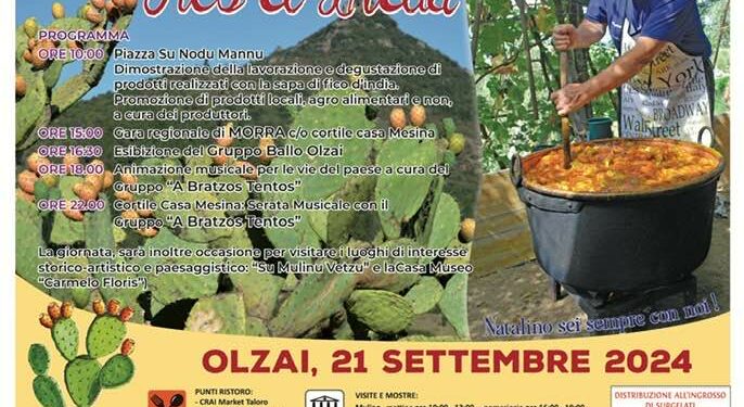 L’associazione “S’arzinamentu” di Olzai ha organizzato la 16ª edizione della sagra del fico d’India, che si terrà sabato 21 settembre. Alle 10.00, in piazza “Su Nodu Mannu”, è in programma la dimostrazione della lavorazione e degustazione di prodotti realizzati con la sapa di fico d’India. I produttori proporranno prodotti locali, agroalimentari e non. Alle 15.00, ci sarà la gara regionale di morra nel cortile di “Casa Mesina”, mentre alle 16.30 si esibirà il gruppo di ballo di Olzai. Alle 18.00, è prevista l’animazione musicale itinerante per le vie del paese a cura del gruppo “A Bratzos Tentos” che, alle 22.00, si esibirà nel cortile di “Casa Mesina”.