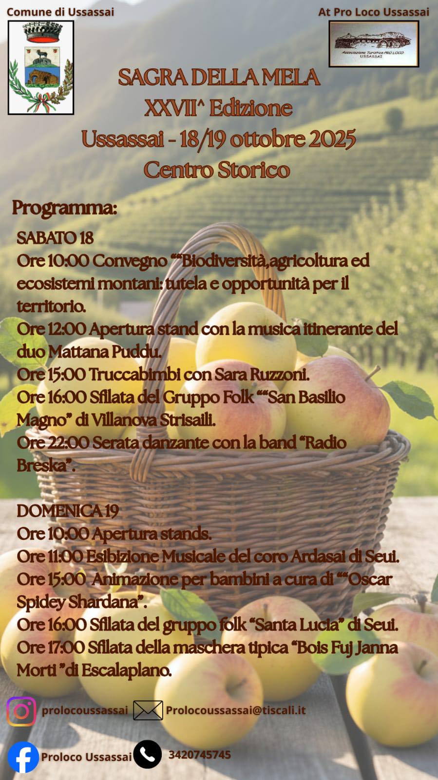 La Pro Loco e il comune di Ussassai hanno organizzato la ventisettesima edizione della Sagra della Mela, che per due giorni animerà la vie del centro storico.