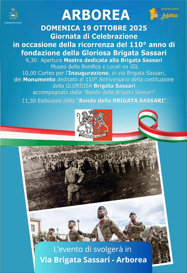 Arborea vuole rendere il giusto tributo alla Brigata Sassari, in occasione del 110° anniversario della sua costituzione, attraverso una mostra e un monumento.