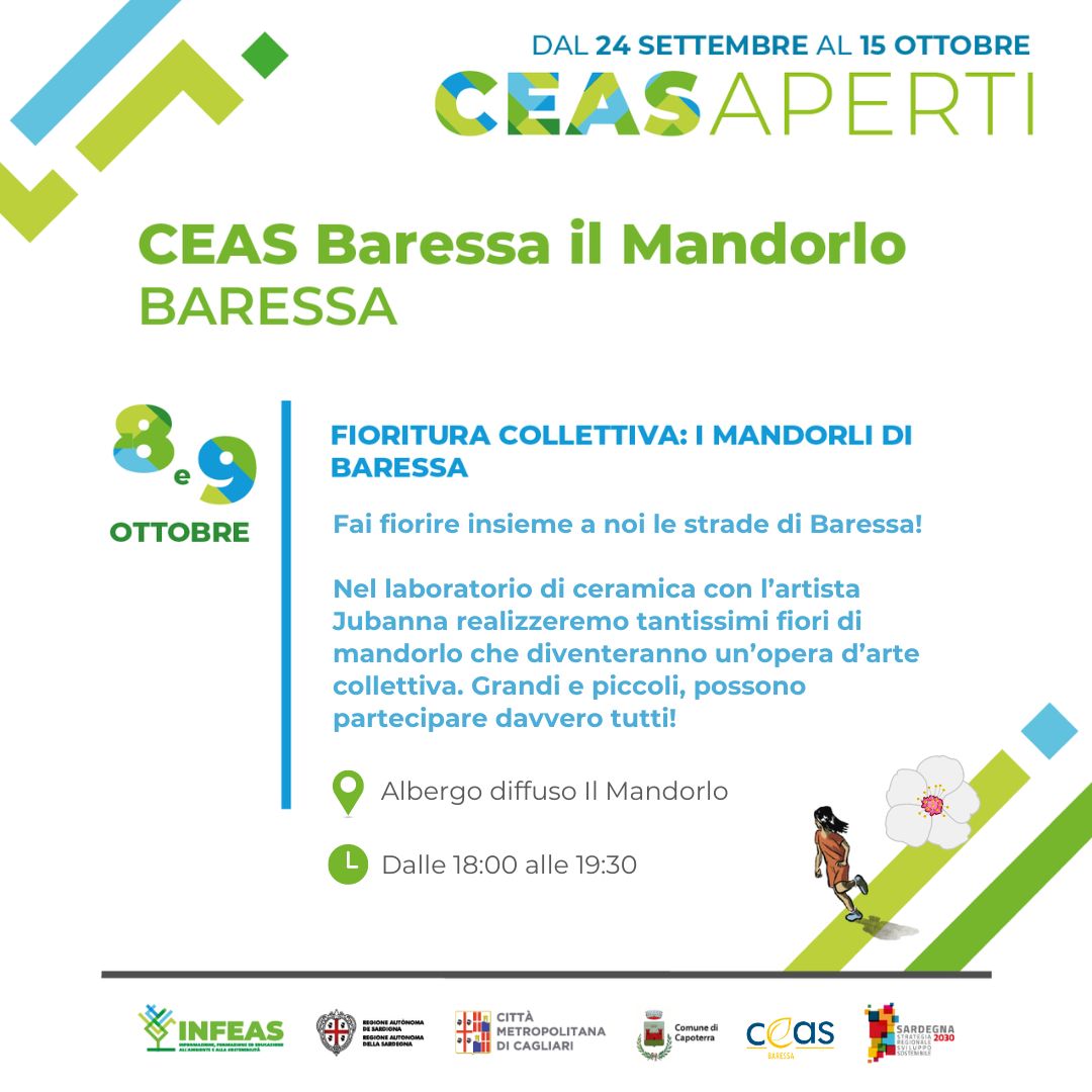Martedì 8 e mercoledì 9 ottobre, a Baressa, dalle 19.30, in occasione della manifestazione regionale “Ceas Aperti” anche il centro di educazione ambientale “Il Mandorlo” aprirà le sue porte alla popolazione per l’iniziativa “Fioritura collettiva: i mandorli di Baressa”.