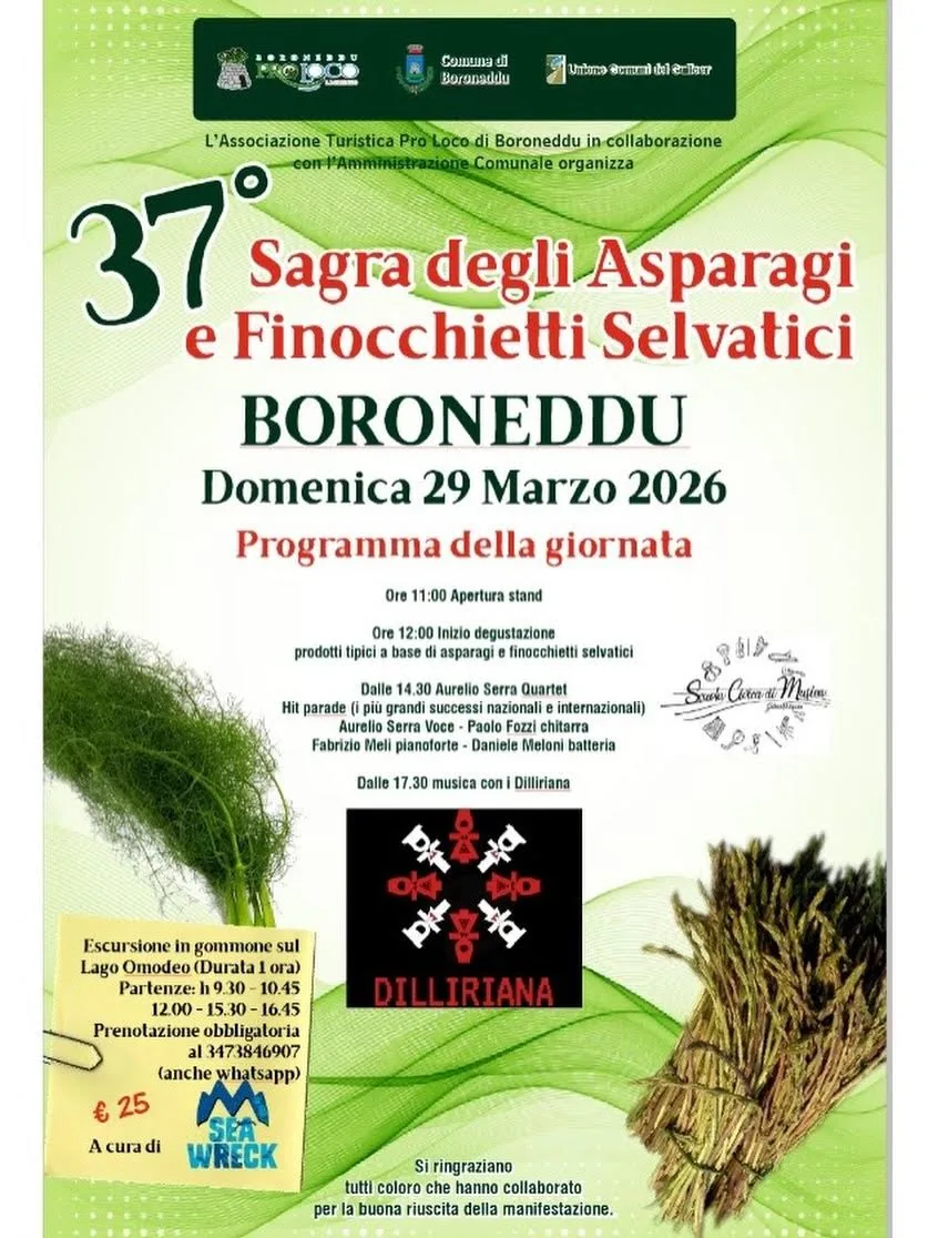 Si rinnova, a Boroneddu, l’appuntamento con la sagra degli asparagi e dei finocchietti selvatici, che quest’anno giunge alla trentasettesima edizione.