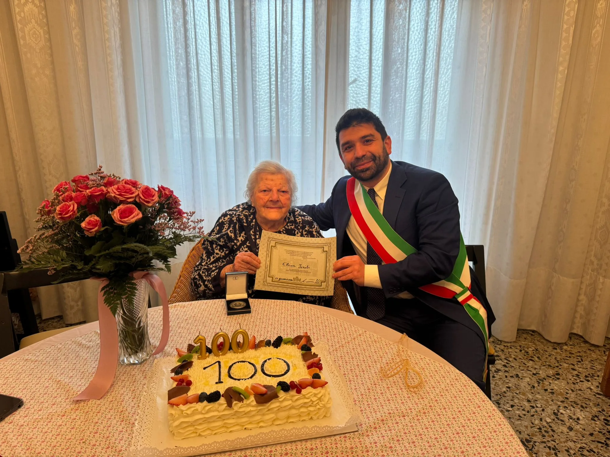 A portare gli auguri dell’amministrazione il presidente del Consiglio comunale Marco Benucci, che l’ha omaggiata nella sua casa al Cep di una pergamena e di una medaglia celebrativa.