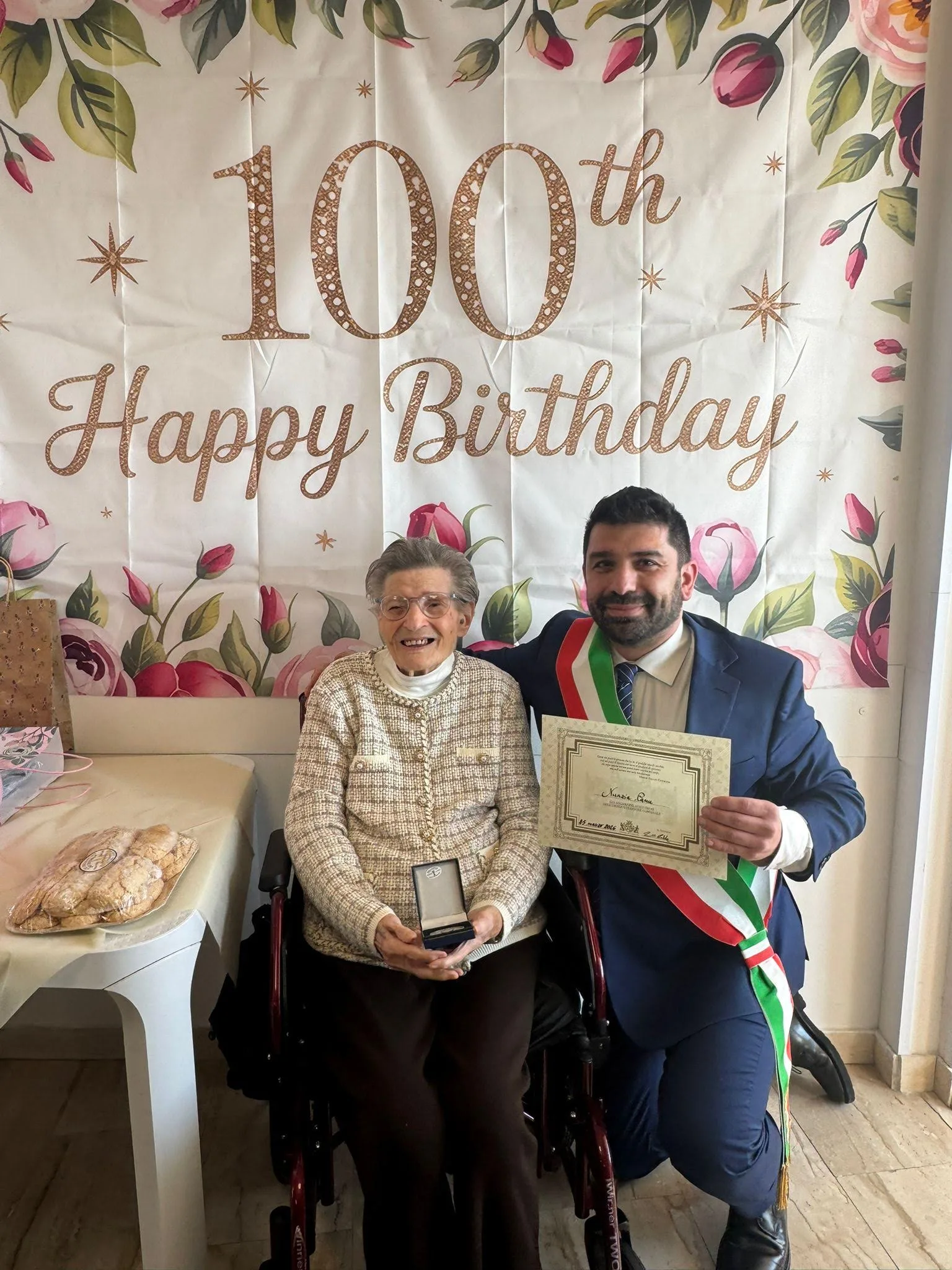A portare gli auguri dell’Amministrazione comunale e della città il presidente del Consiglio comunale Marco Benucci, che ha consegnato alla signoa Nunzia la pergamena e la medaglia celebrative di questa giornata.