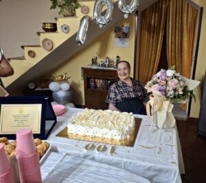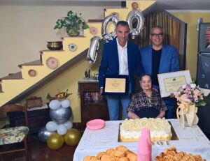 Il giorno del suo centesimo compleanno nessuno ha voluto perdere l’occasione per festeggiare insieme a lei. Tra le tante persone che non sono volute mancare, da segnalare l’assessora delle Politiche sociali del comune di Carbonia Irina Piras che a nome e per conto dell’Amministrazione comunale ha omaggiato signora Mafalda con una pergamena. Neanche la Coldiretti, con la quale la festeggiata è stata tesserata per anni, è potuta mancare al taglio della torta. Il segretario di zona di Carbonia Gianluigi Loru, ha voluto donare alla signora una targa a nome di tutta l’associazione.