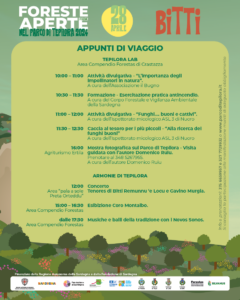 È online da oggi il programma degli eventi dell’ultimo appuntamento di Foreste Aperte nel Parco di Tepilora, in calendario a Bitti domenica 28 aprile nei boschi di Crastazza a meno di due chilometri dall’uscita della strada comunale Bitti-Mamone. La quarta giornata della rassegna, giunta quest’anno alla terza edizione, si terrà dopo le iniziative previste a Posada il prossimo 25 aprile e dopo quelle già organizzate a Torpè il 7 aprile e a Lodè il 21. Il sipario di Foreste Aperte calerà sull’altopiano del paese barbaricino, nel versante più alto dell’area protetta tra vette che superano i mille metri, con una serie di attività capaci di soddisfare i gusti e le passioni degli amanti della natura. E saranno proprio le diverse escursioni in agenda, da quelle semplici a quelle più impegnative, tra percorsi guidati e liberi da seguire a piedi, che faranno della giornata del 28 aprile, Die de sa Sardigna, una festa aperta a grandi e piccoli, famiglie e comitive. Un’immersione totale tra i suoni e i colori di un territorio antico e selvaggio. Per gli amanti delle due e quattro ruote si potranno inoltre noleggiare anche le mountain bike e i quad. La nuova segnaletica allestita in queste settimane lungo i sentieri, dagli operatori dell’Agenzia Forestas, assicurerà spostamenti più rapidi e sicuri per tutti. Proprio il compendio di Forestas di Crastazza farà da centro delle attività con punti ristoro, stand espositivi di prodotti agroalimentari del territorio e non solo, ma anche area di snodo per le navette gratuite che integreranno la mobilità tra i diversi siti inseriti nella mappa delle iniziative. A completare l’offerta delle escursioni ci saranno spazi musicali e concerti nel bosco, laboratori dedicati alle straordinarie varietà di funghi presenti in questi luoghi e momenti di formazione su animali e insetti. Spazi ludici per i più piccoli e tante altre sorprese. La giornata bittese metterà assieme, in uno straordinario gioco di squadra, associazioni e operatori privati, rappresentanti delle istituzioni come il Corpo Forestale e Vigilanza Ambientale (CFVA), Forestas, ASL 3 di Nuoro e le strutture del Parco di Tepilora.