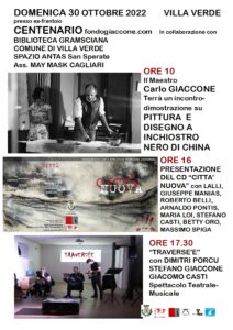 Domenica 30 ottobre si concluderà a Villa Verde la rassegna “Centenario”, organizzata da “fondogiaccone.com”, Biblioteca Gramsciana, Spazio Antas Teatro e comune di Villa Verde per celebrare, appunto, il centenario del fondo “Gabriele Giaccone”. Domenica 30 ottobre, in concomitanza con altre manifestazioni simili in tutta Italia, ritorna a Sini la “Camminata tra gli Olivi”, che taglierà il traguardo della terza edizione organizzata da Comune e Pro loco col sostegno dell’Associazione Nazionale “Città dell’Olio”. Un’intera giornata dedicata al racconto di una piccola comunità, con la sua storia, le sue tradizioni e i suoi maestosi olivi. La proposta sarà quella di un semplice trekking ad anello di circa cinque chilometri. Il percorso si articolerà in diverse tappe, che consentiranno al visitatore di ammirare il territorio di Sini e le sue piante secolari e millenarie, i patriarchi verdi. Alle 9.00 ritrovo in piazza Eleonora d’Arborea con registrazione dei partecipanti. Alle 9,30 la partenza con una sosta a metà mattina per la merenda fra gli olivi e conclusione davanti all’olivo millenario. Nel pomeriggio visita facoltativa al frantoio oleario.