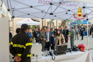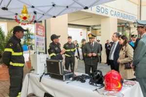 Al termine della cerimonia le autorità hanno fatto visita ai due stand espositivi che il Comando dei vigili del fuoco ha allestito presso la Legione dei Carabinieri, in cui venivano illustrate le attrezzature in utilizzo presso il Corpo Nazionale in caso di interventi non convenzionali (Nucleare, Batteriologico, Chimico e Radiologico) e per i soccorsi in ambiente Speleo Alpino Fluviale.