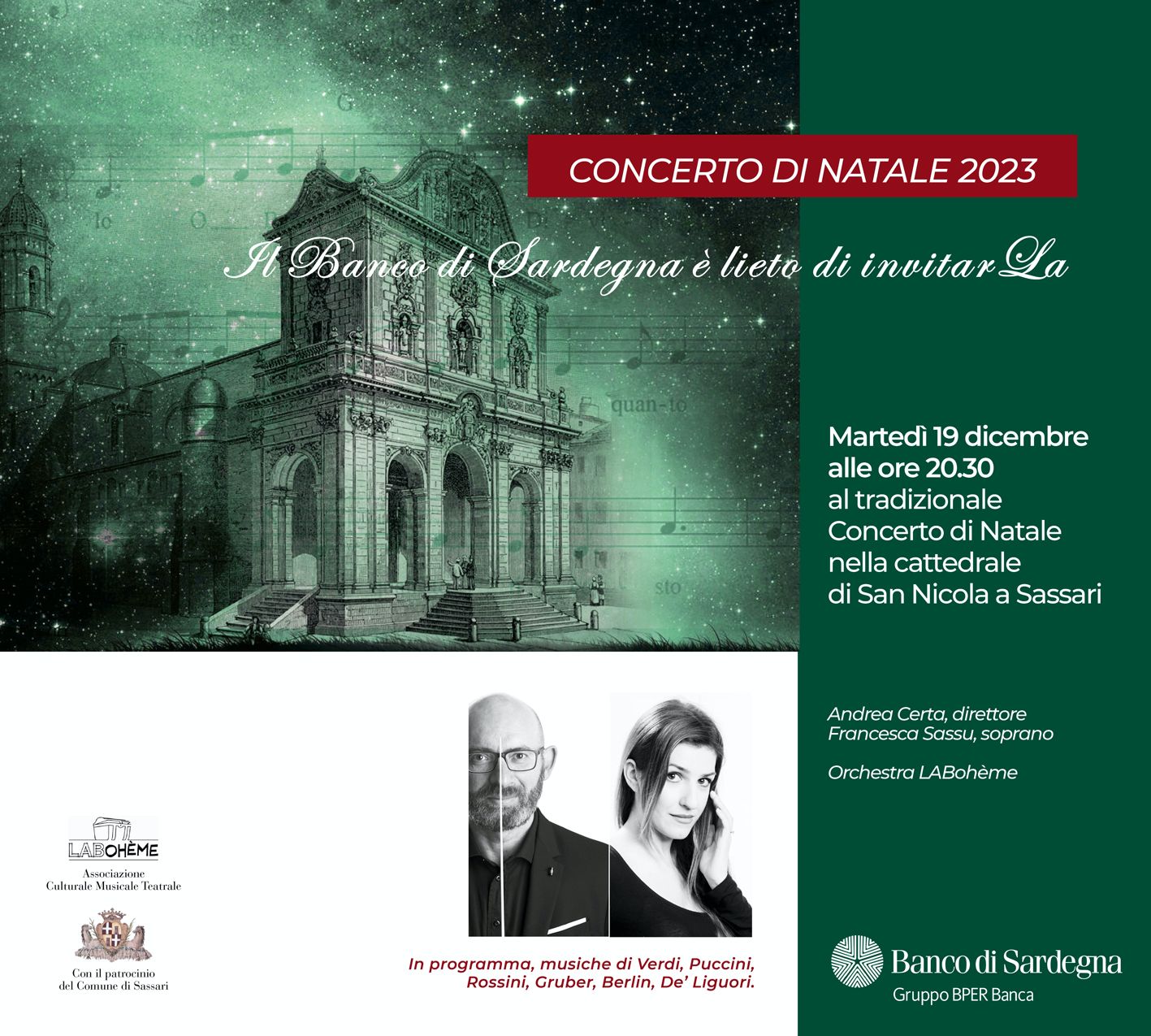Martedì 19 dicembre, alle 20.30, ritorna il Concerto di Natale dedicato dal Banco di Sardegna alla città di Sassari e al territorio, per il tredicesimo anno nella cattedrale di San Nicola. Protagonista della serata sarà il soprano sassarese Francesca Sassu, accompagnata dall’Orchestra LABohème – formazione composta da musicisti provenienti da tutta la Sardegna – diretta da Andrea Certa, di origine siciliana ma sassarese d’adozione.