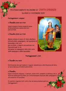 I festeggiamenti in onore di Santa Barbara, proposti dal comitato permanente nelle giornate 3 e 4 dicembre, si sviluppano con senso religioso, di sentimento interiore, e civile nel coinvolgimento alla partecipata dimensione comunitaria di affratellamento.