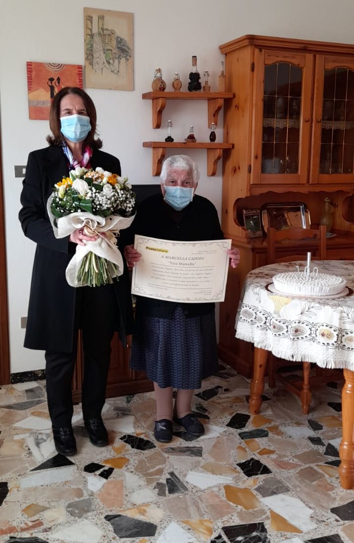 Nel testo dell’attestato che la dipendente di Poste Italiane ha consegnato alla festeggiata non solo i più sinceri auguri per i cento anni appena compiuti ma anche un sentito ringraziamento per le attestazioni di affetto che accompagnano le visite della signora Marcella Cadoni all’ufficio postale: «Gentilissima signora Marcella, nel giorno del suo centesimo compleanno, Poste Italiane Le porge i suoi migliori auguri. L’occasione è lieta anche per ringraziarLa della stima e dell’affetto che ci trasmette in ogni occasione in cui ci viene a trovare nell’ufficio postale di Escolca».