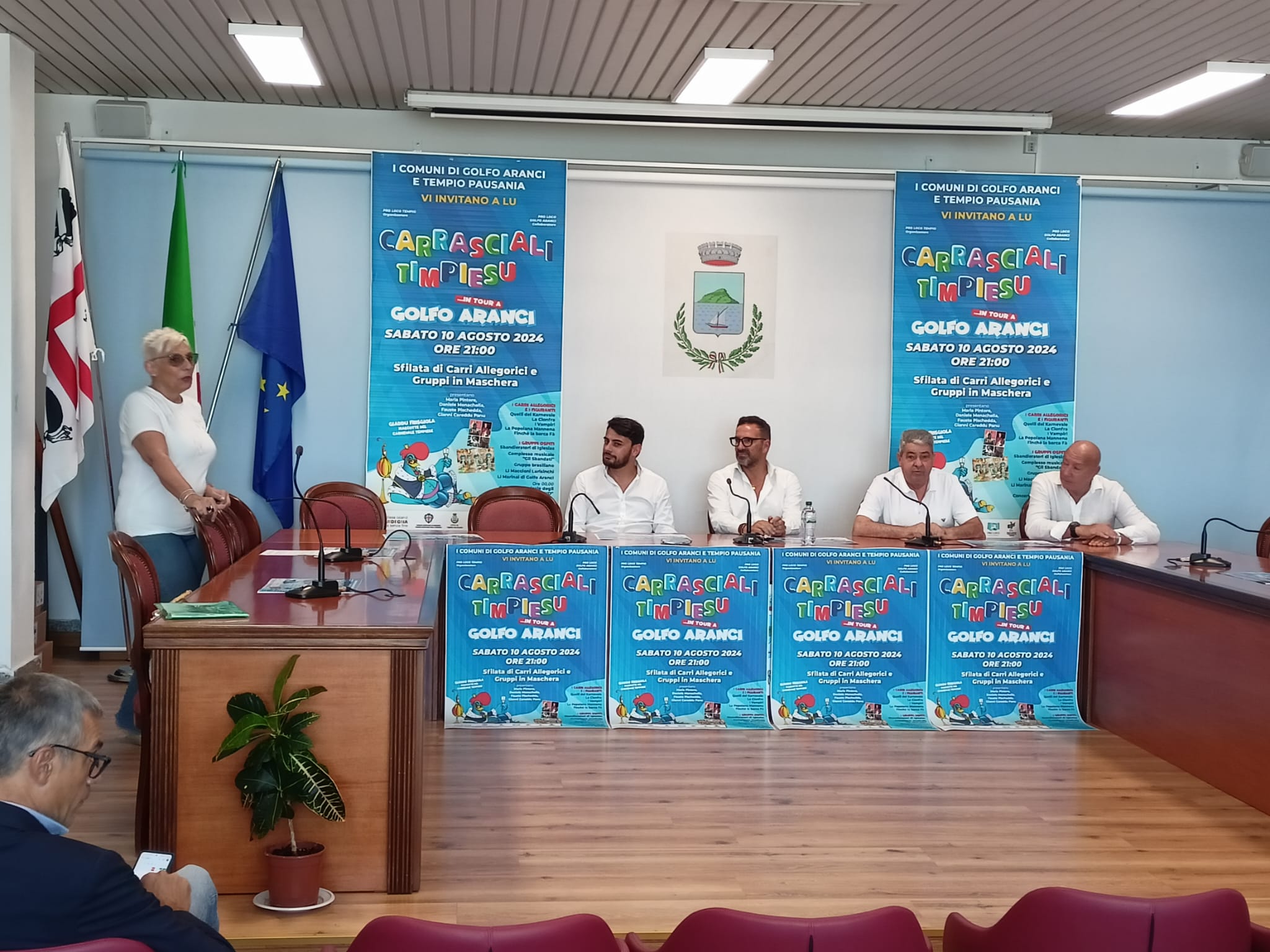 La sala consiliare del comune di Golfo Aranci ha accolto la stampa e il pubblico per la presentazione ufficiale de “Lu Carrasciali Timpiesu in Tour a Golfo Aranci“. «Siamo molto contenti di riportare lu Carasciali Timpiesu a Golfo Aranci,dopo le due edizioni precedenti; lo abbiamo voluto perché, già all’epoca, fu uno degli eventi più riusciti – ha detto in apertura il sindaco di Golfo Aranci -. Abbiamo fatto degli sforzi per realizzare tutto in tempi brevi, e non è stato facile! Il lavoro fatto darà la possibilità di una stagione più lunga , in modo che più persone possano usufruirne.»