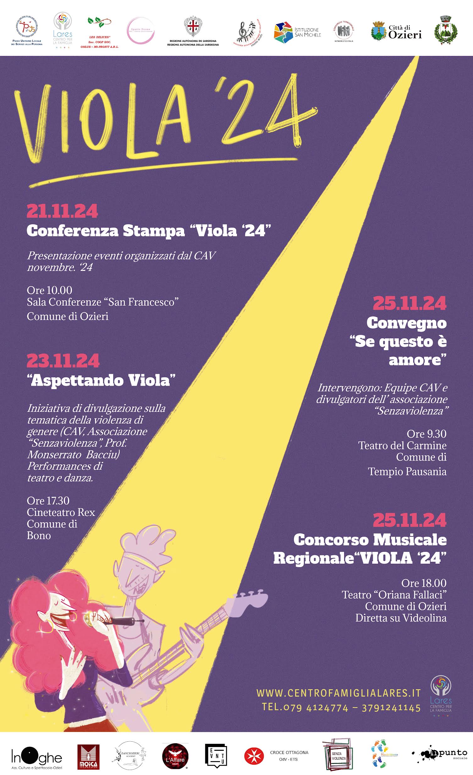 Il 23 novembre 2024, presso il Cineteatro Rex, nel comune di Bono, alle ore 17.30,è previsto “Aspettando Viola”, un evento-dibattito di divulgazione sul tema della violenza di genere che combinerà momenti di riflessione e approfondimento e momenti di performances artistiche, attraverso la danza e il teatro.