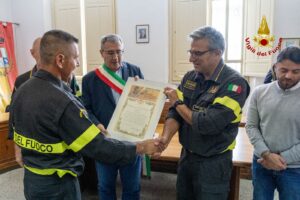 I vigili del fuoco del paese, infatti, si sono distinti «per gli interventi di soccorso durante l’emergenza maltempo del 27 aprile 2025 – si legge nella nota di encomio -. In quella occasione il personale del distaccamento nonostante le avverse condizioni meteo si prodigava «con grande spirito di abnegazione e professionalità, sia a tutela della popolazione e dei beni, intervenendo in varie abitazioni del paese, specialmente in quelle di persone anziane, sia a supporto dell’Amministrazione comunale, per il ripristino della circolazione stradale in sicurezza».