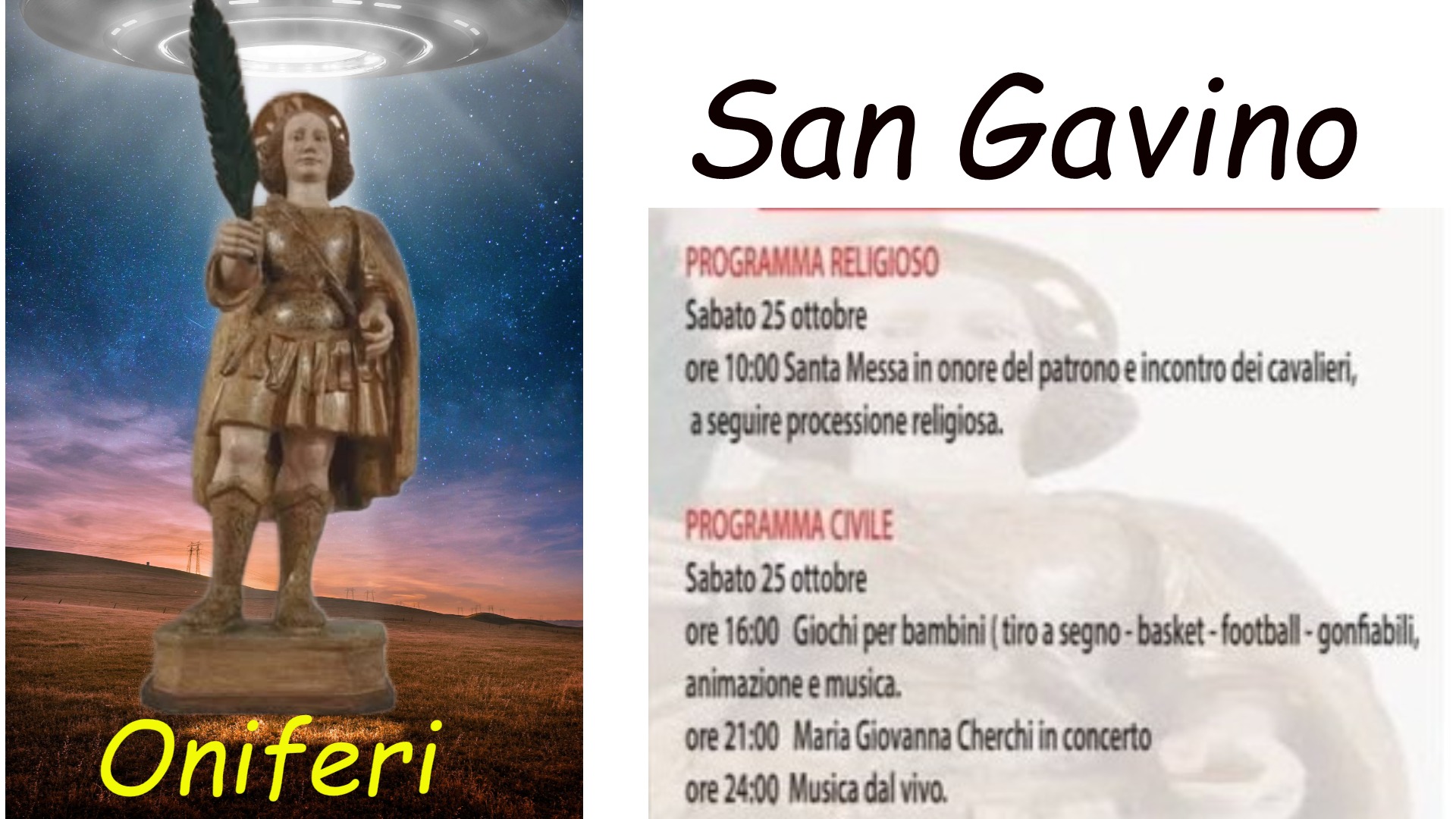 Oniferi si appresta a festeggiare San Gavino. Gli appuntamenti si terranno sabato 25 ottobre e cominceranno alle 10.00 con la Santa Messa, l’incontro con i cavalieri e la processione religiosa.